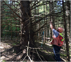 The mission of Forêt Hereford is first and foremost to restore its large private forest. The forest’s landscape has evolved from an ancient, complex, mixed-stand forest of noble tree species with a good quantity of dead wood (prior to 1850) to a much younger disturbed forest made up mostly of deciduous wood. The combination of beech, maple, spruce and hemlock (almost 80% of trees before 1850) has today given way to maple (mainly sugar maples), fir, and paper birch, which account for over 80% of the trees today.