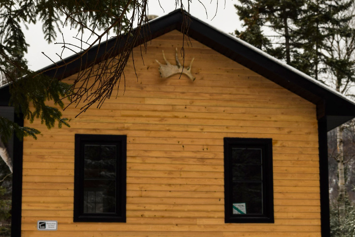 This building owes its name to a moose antler found during the exploratory work on its future site. The old antler has been carefully preserved and restored so that visitors can feel welcomed! You will also notice old barn wood (planks and beams) in some places in the building. This wood was recycled during the demolition works of an old Hereford Forest barn, that was about to collapse on Highway 253 in East Hereford. Today, the only things that remain of butcher Mederic Marquis’s barn are its stone bridge, the mountain bike trail La Grange (signature trail that pays tribute to our heritage builders) and these old pieces of wood in the Vieux Panache refuge.