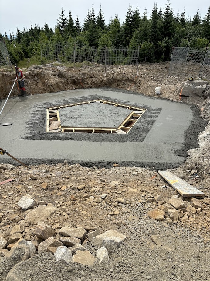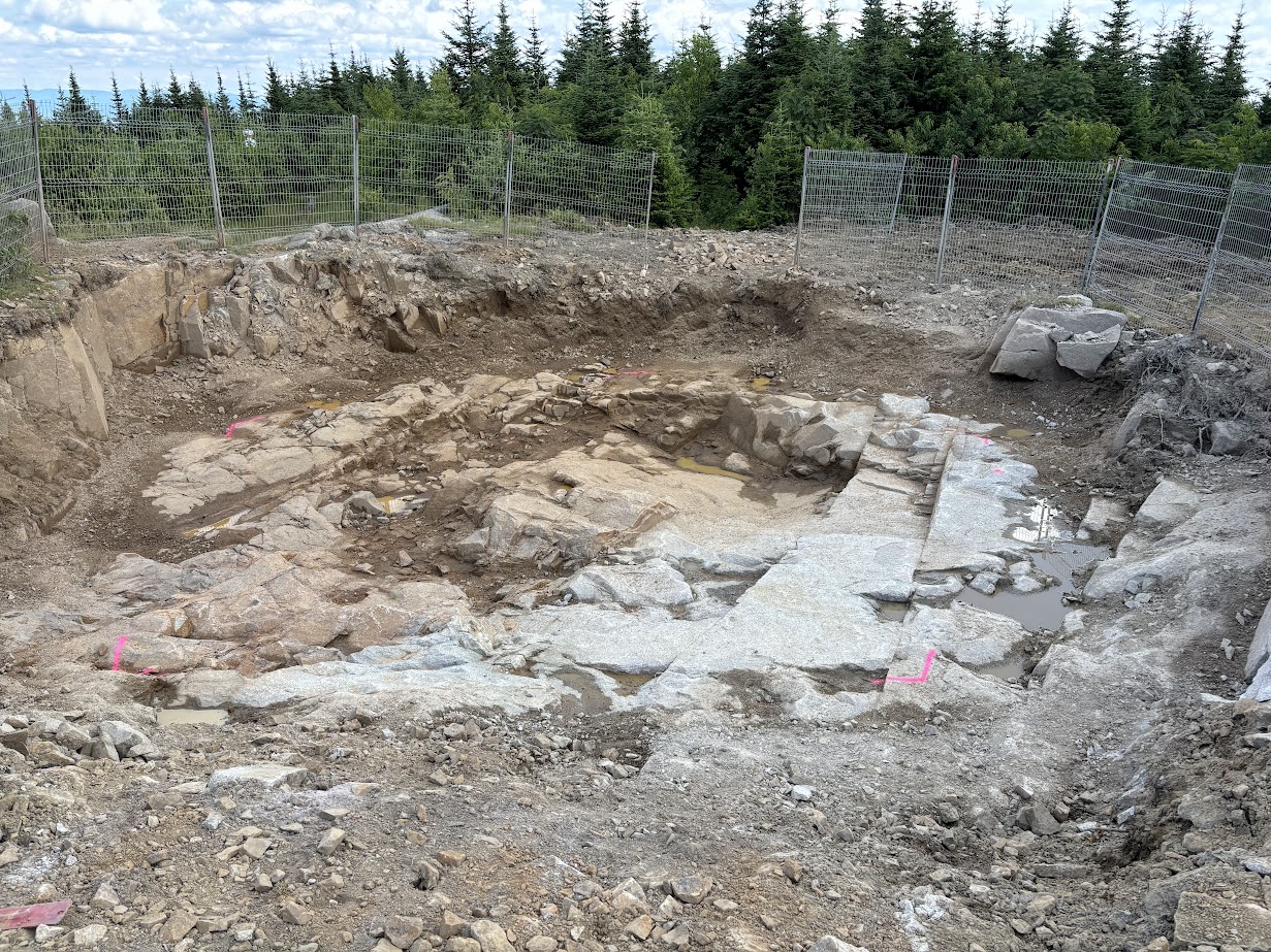 5 juillet 2024 - Excavation terminée. Le pentagone marqué sur le roc