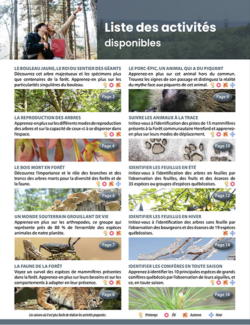Il existe une multitude d’activités à pratiquer en toute saison dans la Forêt communautaire Hereford. L’harmonisation entre chacune d’elles est assurée par la Table des Usagers.